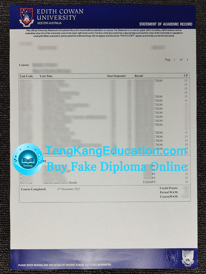 伊迪斯科文大學成績單Edith Cowan University transcript