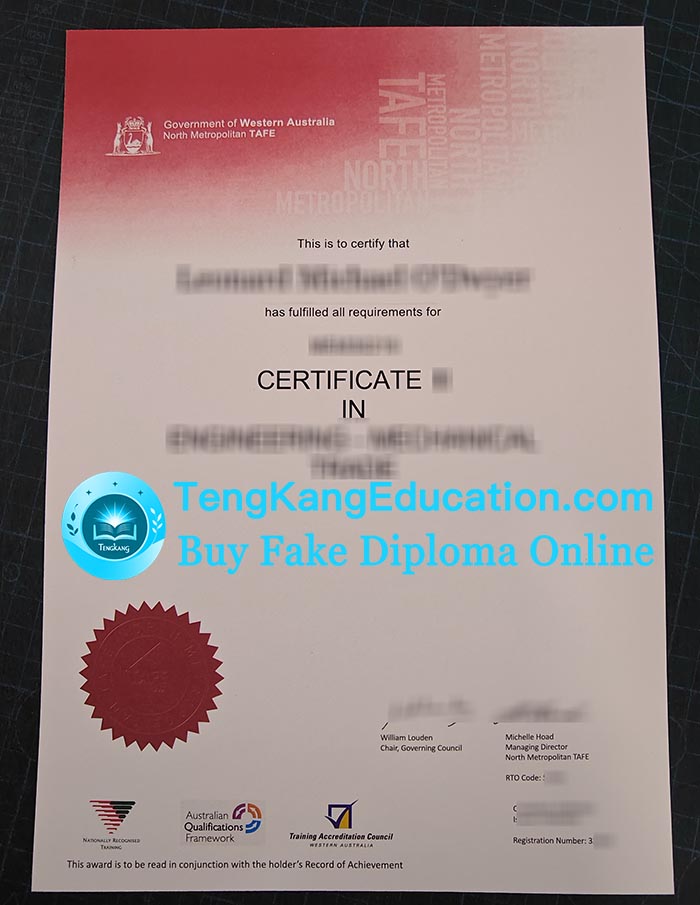 北都会区TAFE学院证书North Metropolitan TAFE certificate