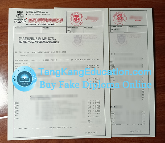 卡尔加里大学成绩单University of Calgary transcript