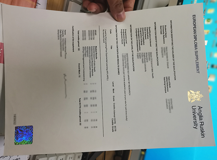 安格利亚鲁斯金大学成绩单