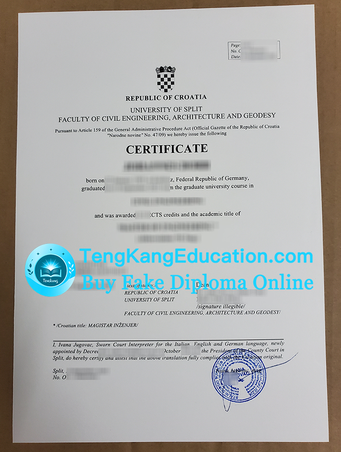 斯普利特大学毕业证University of Split diploma