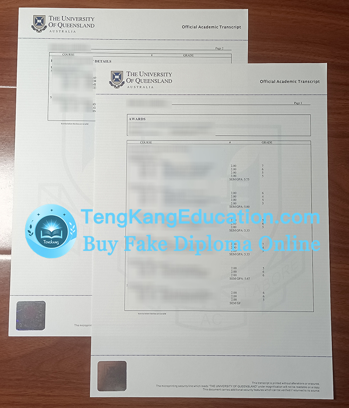 昆士兰大学成绩单University of Queensland transcript