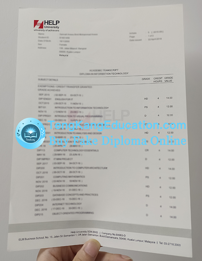 HELP University transcript